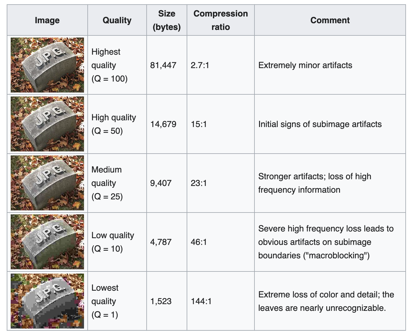 If you have ever saved a JPEG image and chosen a quality value, this is where that choice comes into play.