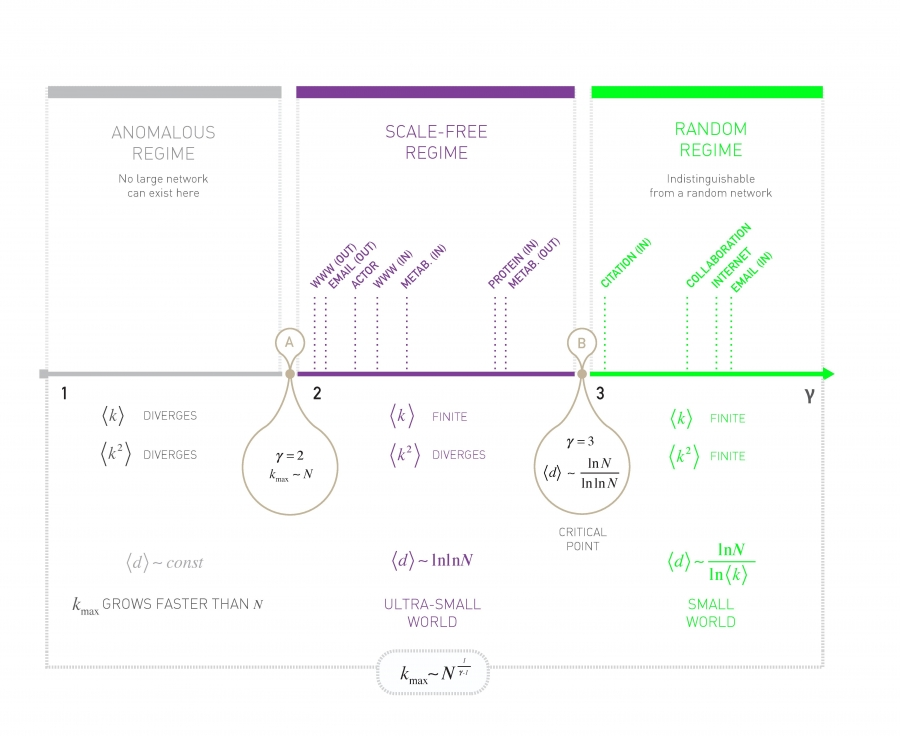 A scale-free network is a network where the degrees of connections of the nodes follows a power law (modelled by the Power Law , this is also where the concept of the 80/20 rule comes from). For example, roughly 80% of the web point to only 15% of the web pages.