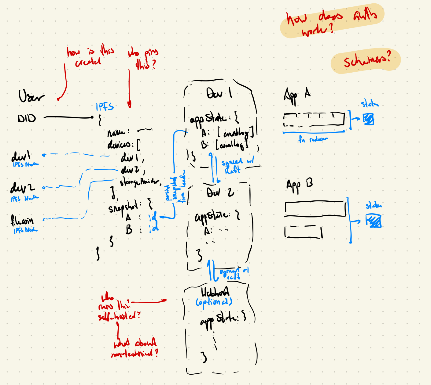 - Each device in the devices array runs a Rhizome Node which is essentially a wrapped IPFS node that pins the user IPFS object and can edit it
