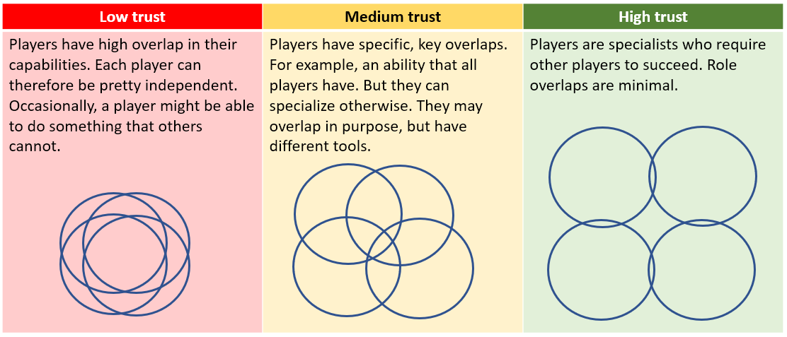 For new players, one of the scariest things is requirement to engage in specialized, high coordination group performances. Building towards high trust using a ladder: